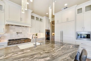 Thermador appliances highlight this large kitchen. Appliances include a 48" fridge/freezer combo, 48" range, 2 dishwashers, microwave and a seperate 30"oven. There is an oversized island, walk-in pantry and a butler pantry.